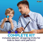 Magic Set for Kids Ages 6-14 Ultimate Kit of Spectacular Magic with 300+ Mind-Blowing Magic Tricks & Complete Role Play Set Ideal for Beginners Exclusive Box with Magical Costume & Wand. Magic tricks are explained in the user manual to learn, play and create your own props and become a young magician. Made of high-quality material, safe and environmentally friendly props. Your kids can play this STEM game toy indoor or outdoor. Increase Self Confidence And Ability To Think: The fun stuff set is filled with so many easy-to-learn tricks and high-quality props, kids can learn the same tricks as professional magicians quickly, to increase self-confidence; At the same time, these basic magic techniques can be extended to other forms of magic that can exercise your child’s ability to think. High Quality Kids Magic Props: Made of high quality material, safe & environmentally friendly props toys; The edges of the toys are polished to ensure they will not hurt your child, designed for young hands and ideal for beginners and kids. Ideal for Beginners: Premium quality, child-friendly props are designed for young hands and ideal for beginners. Learn-Play-Create your Own Props: Magic tricks are explained in the user manual to learn, play and create your own props and become a young magician. Made of high-quality material, safe and environmentally friendly props. Your kids can play this STEM game toy indoor or outdoor.