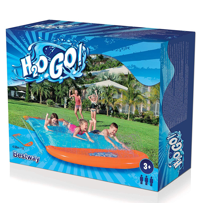 The H2OGO! ® Blobzter ™ attracts children outside and ensures that they are cool all summer long! The water can be filled up through the opening on the blob, creating a cool area for playing, lying down and sliding around. Simply connect to a garden hose and the water sprays over the surface. Kids will love sliding and bouncing on their slippery new blobzter with their friends! When it comes to quitting, the water is emptied in no time. Splashing, sliding and playing in the sun has never been more fun than with the H2OGO! Blobzter.