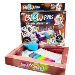 Box contains: 12 colour blow pens, 8 templates, 6 papers
