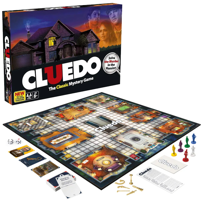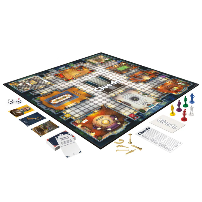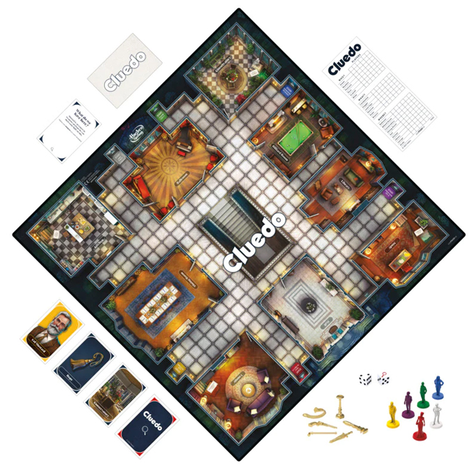 Who killed Boddy Black? Solve the mystery in this suspenseful Cluedo board game! When 6 guests arrive at Boden Black’s mansion, none are certain what to expect. But when their host turns up dead after revealing a sinister blackmail scheme, the pressure is on. Race against the other players to crack the case by gathering cluedo and narrowing down choices. Each player tracks their cluedo in a detective notepad and eliminates information to sleuth out who killed Mr. Black, where in the mansion they did it, and what weapon was used. Roll a magnifying glass icon? Draw a Cluedo card to add to the intrigue! A player might open a new secret passage or get to name a weapon they want revealed. Be the first to make the correct accusation and win the game! This Cluedo murder mystery game is beautifully reimagined with a dazzling cast of characters, luxurious setting, and fresh storyline. It’s a fun game for families, friends, mystery fans, and kids ages 8 and up!.