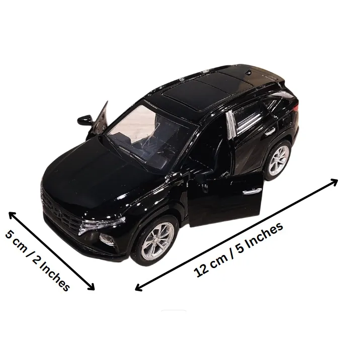 Experience the thrill of driving a Hyundai Tucson with this finely crafted 1:32 scale die-cast model. Designed for both collectors and young enthusiasts, this toy car offers an impressive level of detail and durability. Made from high-quality alloy metal, it features a sleek design that mirrors the real Hyundai Elantra. The model includes functional front doors that open for added realism and play value. Enjoy interactive play with built-in lights and sound effects, including working headlights and engine sounds that make the model come alive. Measuring approximately 5 inches in length, it is perfectly sized for small hands and makes a great addition to any toy collection or display. Ideal for children and collectors alike, this die-cast Tucson combines fun with durability and attention to detail.