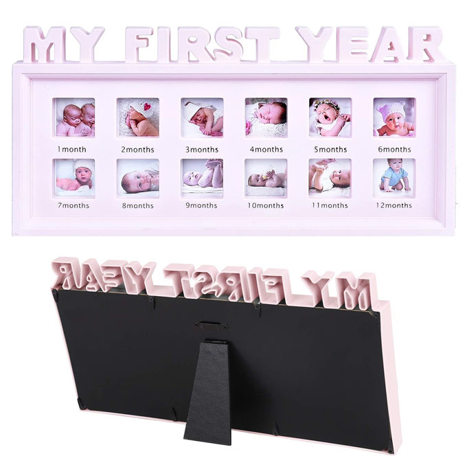 This photo frame is the perfect way to capture your baby’s first year. With space for 12 pictures, one for each month, you can watch your little one grow and change right before your eyes. The frame features the words “MY FIRST YEAR” in a playful font, making it a great addition to any nursery decor. Made with high-quality materials, this frame is durable and will last for years to come. It’s a wonderful gift for new parents or your little one. Gender: Unisex AgeRange:0-6m AgeRange:7-12m Material: Plastic Specification:1xPhotoFrame Size:app.42cmx21cm/16.54inx8.27in Product: Baby Photo Frame Material: Plastic Color: Blue, Pink, White Style: “MYFIRSTYEAR” Quantity:1Pc Photo frame for baby’s first year pictures Holds 12 monthly photos of your baby Perfect for nursery décor My First Year Baby Pictures Wooden Frame for 12 Month. Frame Pictures From 1 Month to 12 Month Baby Photo Frame. Recommended Age: From 0 month +. Perfect gift for new mothers. color frame matches any décor.