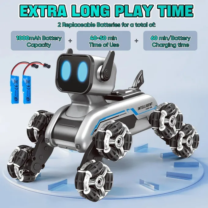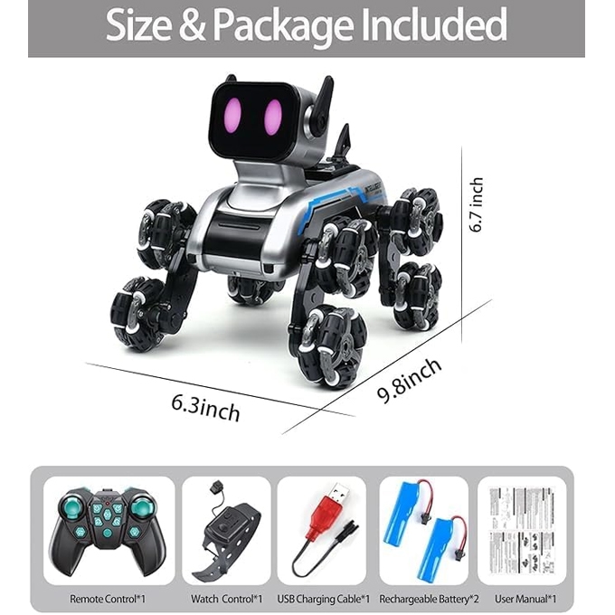 Meet the smart and programmable robot dog that brings technology and play together in the cutest way possible! Kids can teach their robotic puppy fun tricks, make it dance to music, and follow custom commands—an awesome introduction to early STEM skills. With the included remote, children can easily control its movements, playful sounds, and adorable actions, enjoying hours of interactive fun. Realistic puppy behavior like barking, tail-wagging, and walking makes it feel like a friendly pet—without the mess of a real one! Bright LED eyes show emotions while built-in music keeps playtime exciting and sensory-rich. It’s an ideal educational and entertaining gift for boys and girls aged 5 and up, helping them boost creativity, hand-eye coordination, and problem-solving while they play