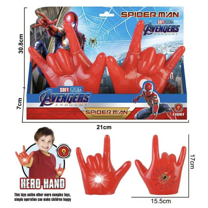 This childhood action hero hand gloves set is made of skin friendly soft PVC plastic material which makes it safe and easy to wear for long playing hours. Convert into a superhero mode in just a few seconds by wearing these hand gloves and play around in the action world. Kids who wear it can emulate the essence of their favorite Super Hero! The realistic-looking glove looks like it’s part of the wall-crawling hero’s costume. The product has been designed to give a real-like look and can fit in to the standard hand size of 6 to 15 years of age. This superhero weapon toy comes with 3 different light mode sequences Super fast blinking, Fast Blinking & Slow Blinking with Dimming Effect. Light sequence mode can be changed by pressing the round white button in the middle and the light can be turned off by pressing it