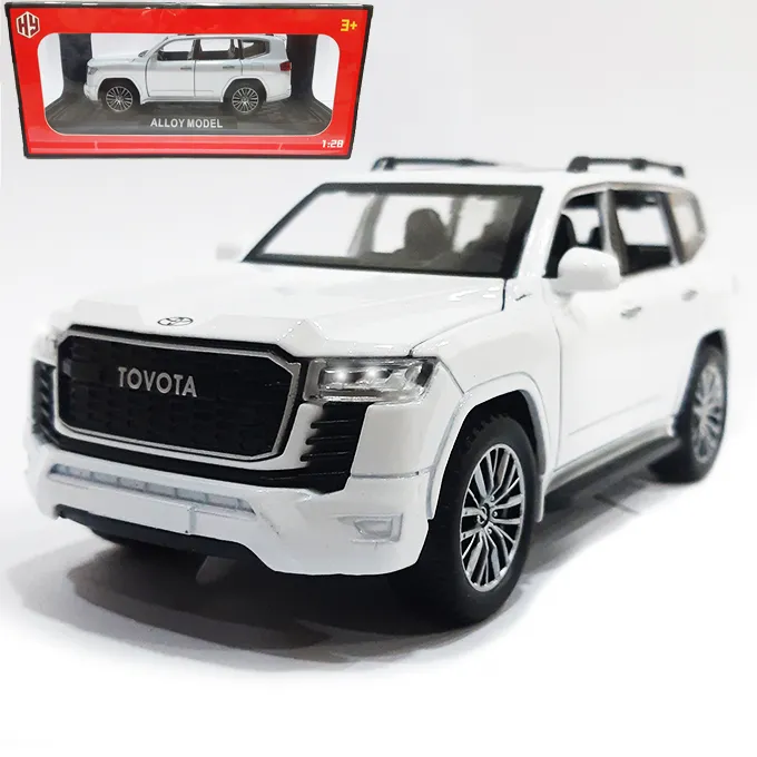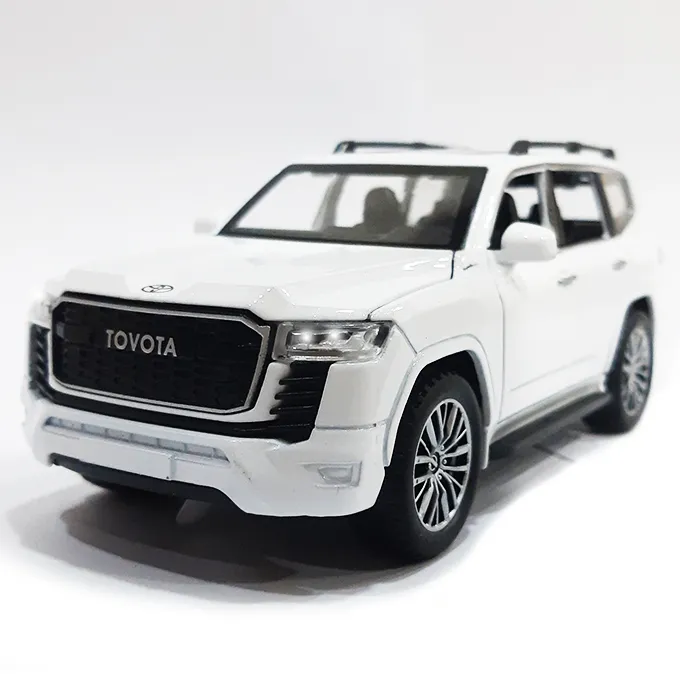 The Toyota Land Cruiser White 2024 Model in 1:28 scale is a beautifully crafted die-cast replica that brings the rugged luxury of the iconic SUV into your hands. With its sleek White finish and intricate details, this model captures every essence of the real Toyota Land Cruiser, from its distinctive front grille to the detailed wheel rims. Designed for both play and display, this 6-inch SUV offers a realistic experience with openable doors and a fully functional trunk. Whether you’re showcasing it as a collectible or engaging in imaginative play, this Land Cruiser model is built to impress. The high-quality die-cast construction ensures durability, while its finely painted exterior and detailed interior provide a premium touch that collectors will appreciate. Ideal for Toyota fans, die-cast collectors, or anyone who appreciates a miniature version of one of the most legendary off-road vehicles ever made, the Toyota Land Cruiser White 2024 Model is sure to make a standout addition to any collection. Whether you’re displaying it on your shelf or taking it for a spin, this model is a true representation of Toyota’s 2024 powerhouse SUV.