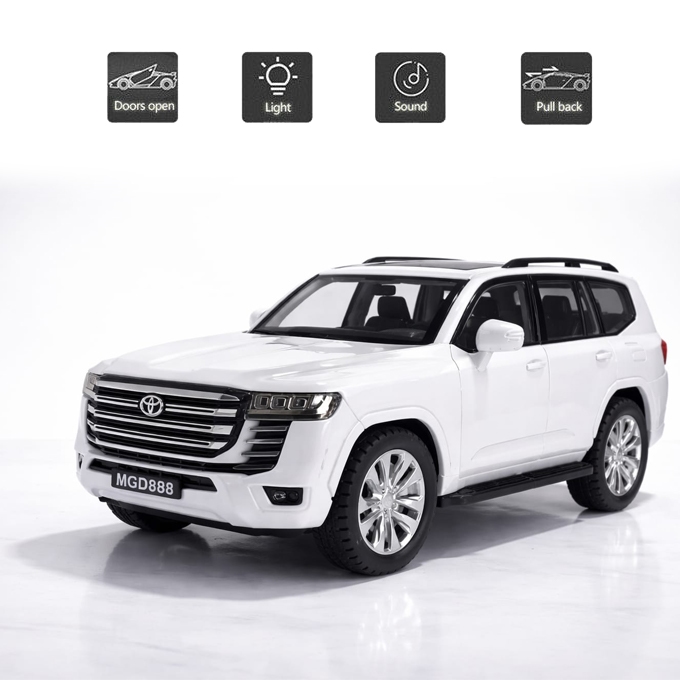 This 1:24 scale SUV model car is a perfect combination of style, durability, and fun. Made with a high-quality plastic body, it features a realistic design that closely resembles a real luxury SUV. The push power mechanism allows kids to simply push the car forward and watch it move smoothly without the need for batteries.